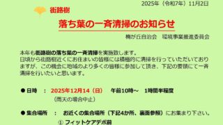 注目情報2025年11月8日2025/12/14 「街路樹 落ち葉の一斉清掃」のお知らせ