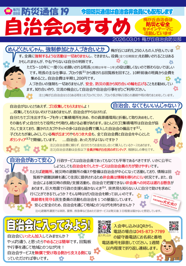 防災通信 No.19 「自治会のすすめ」