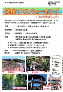 2025年11月8日 / 最終更新日時 : 2025年11月8日 仮屋ホームページ担当 注目情報 「2025/11/22開催 健康づくりウォーキング」に行きましょう <参加者募集> 去年の春にたどった「ららぽーと」への道のりを、今度は秋ウォークで訪ねてみます。 日時:11月22日(土)9時30分集合