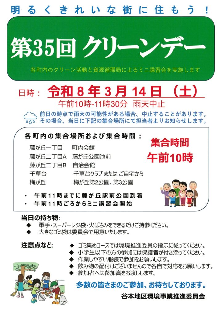 2026年3月14日(土)開催 「第35回クリーン作戦」(谷本地区環境事業推進委員会)