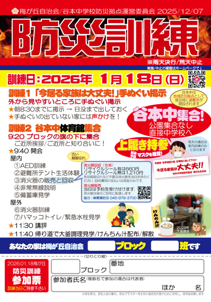 「防災訓練」開催のお知らせ(2026年1月18日(日))